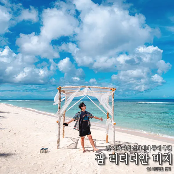 리티디안 비치란? 괌 북부에 위치한 새하얀 모래사장과 에메랄드빛 바다로 이루어진 야생 환경 보호구역으로 괌 여행객이라면 필수 코스입니다. 조용한 프라이빗 비치에서 힐링하며 비치 투어를 즐길 수 있는 힐링투어 입니다. |