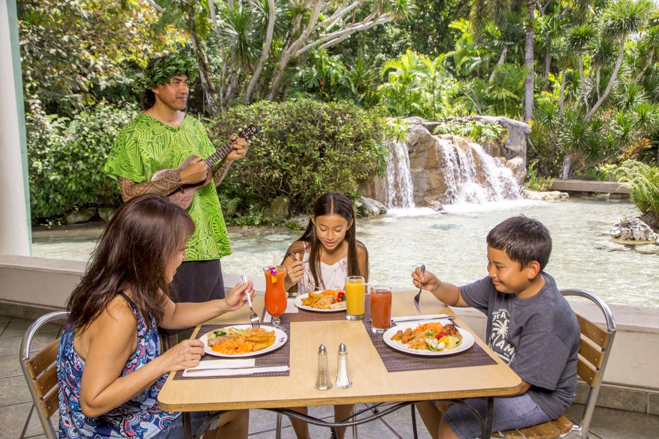 열대 분위기 가득한 레스토랑에서 현지에서도 인기 있는