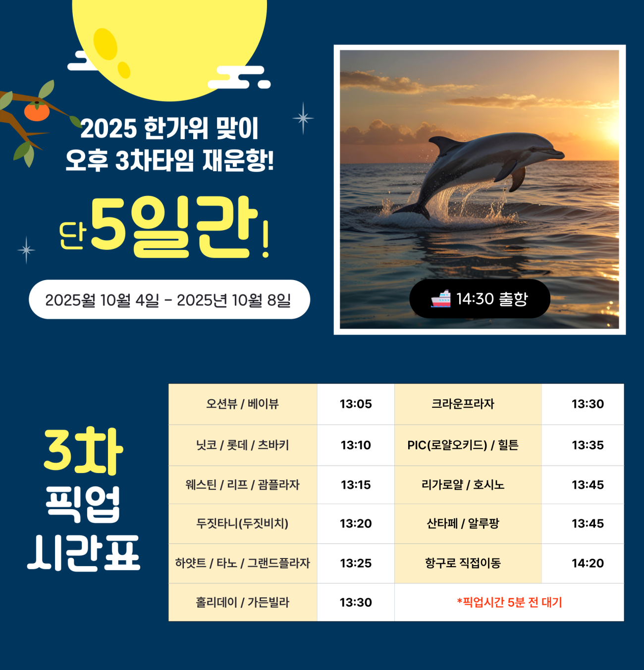 픽업장소 | (1차 오전) 09:30 | (2차 오전) 11:30 | (3차 오후) 14:30 |